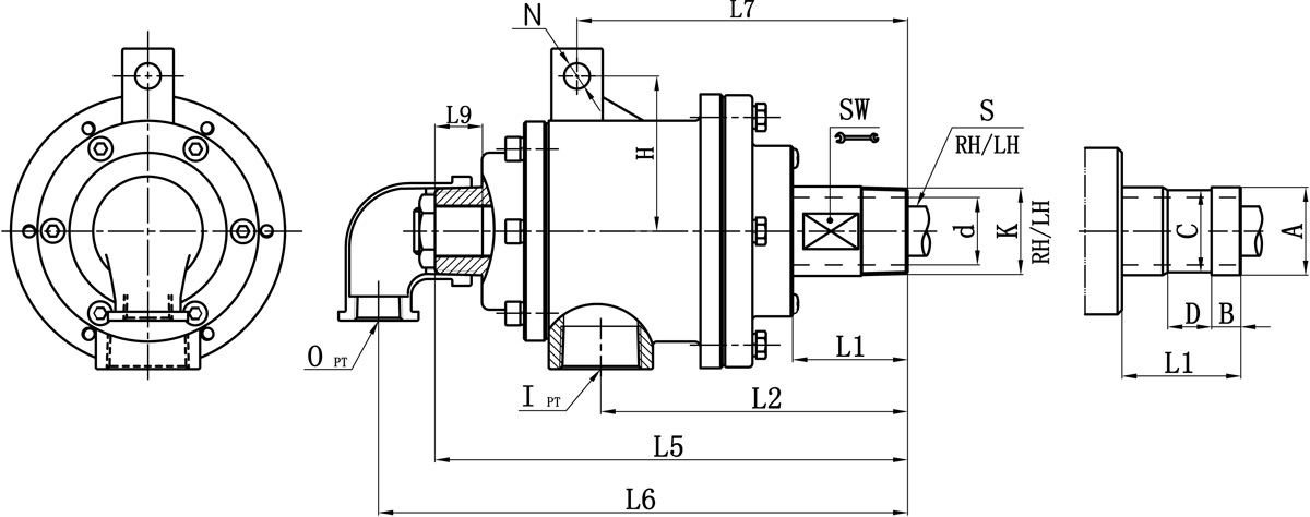 | Model | K | I | O | S | d | L1 | L2 | L5 | L6 | L7 | L9 | N | H | SW | 法蘭式外管尺寸對照表 | |||