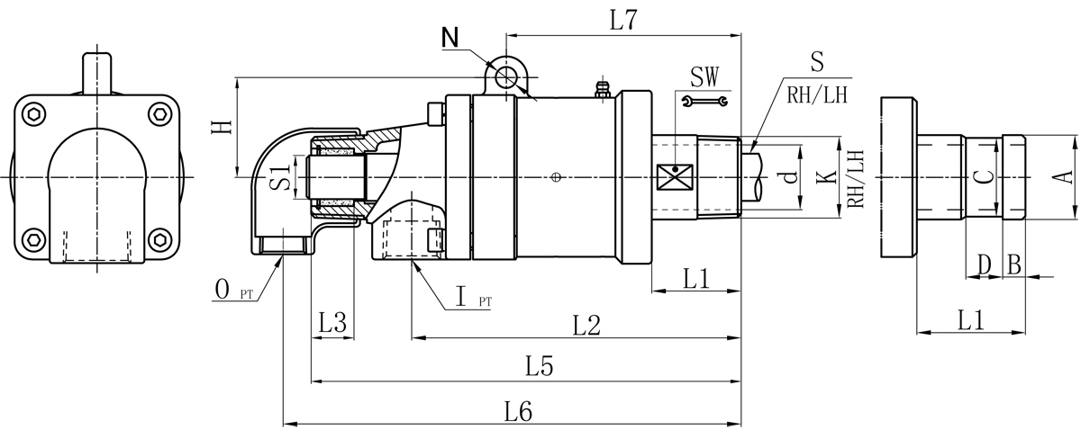 | Model | K | I | O | S1 | d | L1 | L2 | L3 | L5 | L6 | L7 | N | H | SW | 法蘭式外管尺寸對照表 | |||