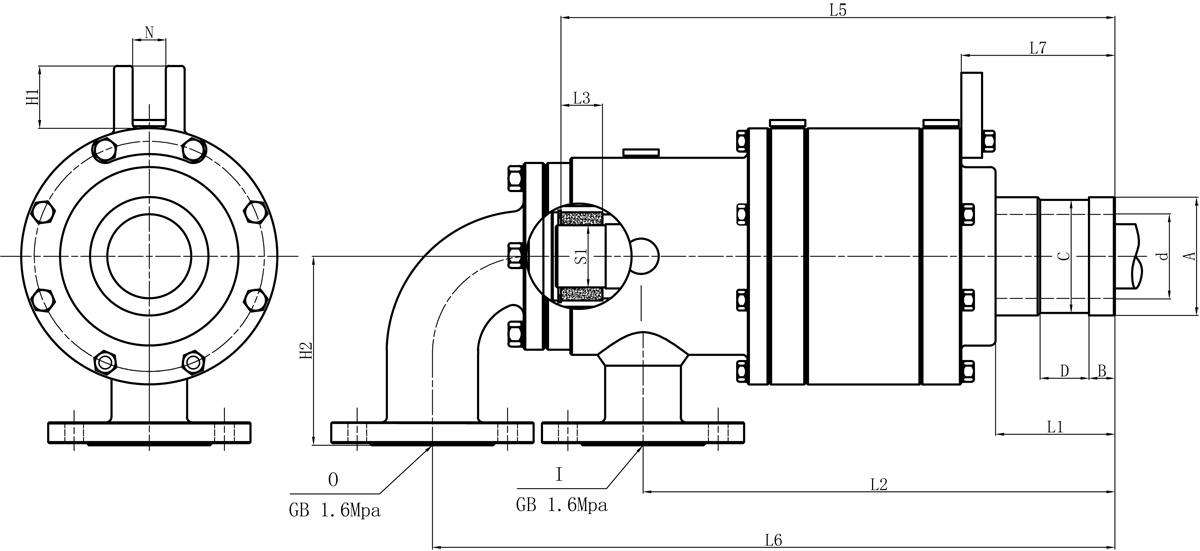 | Model | I | O | S1 | d | L1 | L2 | L3 | L5 | L6 | L7 | N | H1 | H2 | 法蘭式外管尺寸對照表 | |||