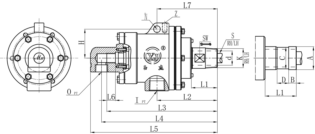 | Model | K | I | O | S | d | L1 | L2 | L3 | L4 | L5 | L6 | L7 | Z | N | SW | H | 法蘭式外管尺寸對(duì)照表 | |||