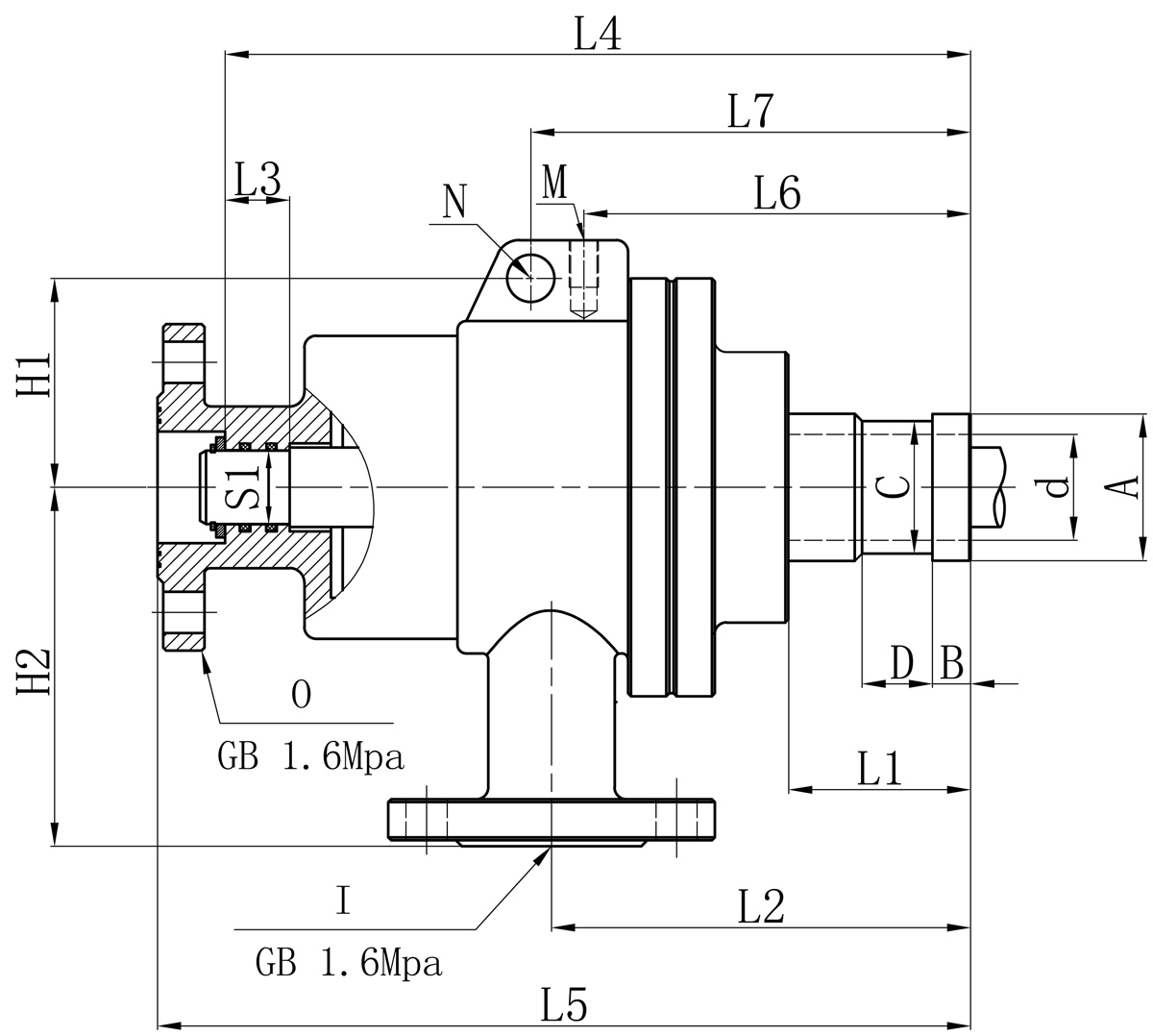Model I O S1 d L1 L2 L3 L4 L5 L6 L7 N M H1 H2 法蘭式外管尺寸對照表